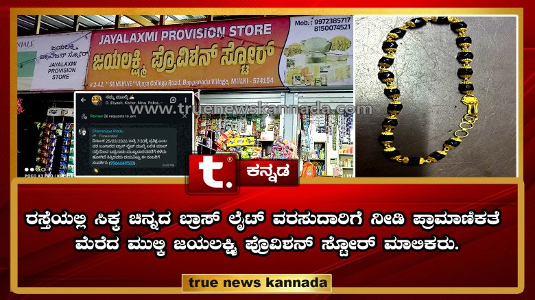 ರಸ್ತೆಯಲ್ಲಿ ಸಿಕ್ಕ ಚಿನ್ನದ ಬ್ರಾಸ್ ಲೈಟ್ ; ಹಿ...